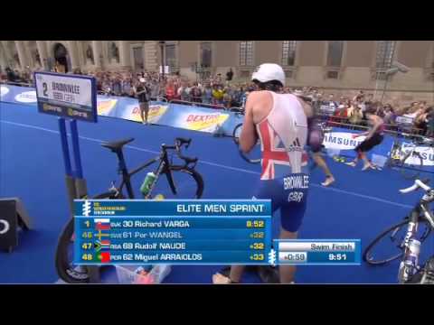 Great Britain's Jonathan Brownlee claimed his fourth ITU World Triathlon Series win in style, besting Spain's Javier Gomez and France's Vincent Luis in Stockholm on Saturday.